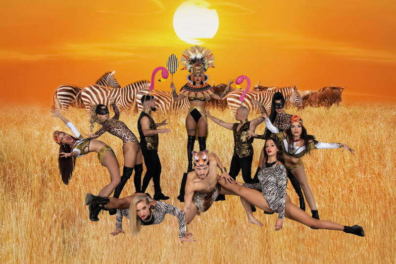 De 6 à 8 artistes sur scène mêlant chant, danse et performance.